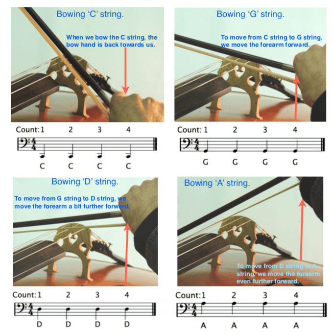 Here is the video from the Flipped Strings Level One iBook – Cello, showing how we bow crotchets on the open strings of the cello.