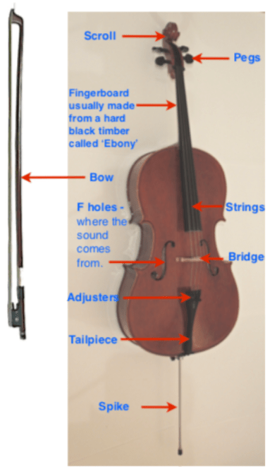 The cello (full name – Violoncello) was developed from an older instrument known as the Viola Da Gamba around the 1600s. It is mainly bowed like the violin and viola but is also sometimes plucked.