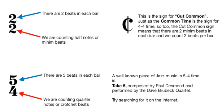 There are more time signatures as shown below – you can research and find more music in these time signatures.
